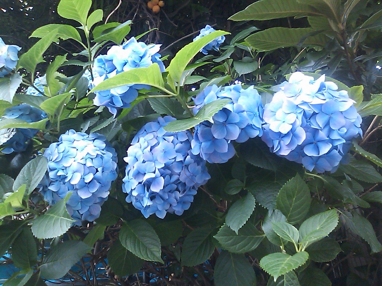 近所に咲いていたあじさい。奥の方にちらっとビワも。