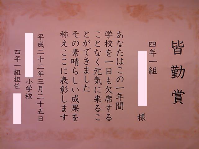 「今どきって“皆勤賞”で表彰されたりしないんですよねー。うちなんて健康だけがとりえだから、表彰されたら嬉しいのになぁ・・・」